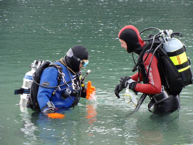 Der erste Tauchgang war der Tauchgang des Erwachens, denn das Wasser war a…..kalt und die Sicht nicht ganz so gut wie im Hallenbad zu Aichtal. So macher männlicher Teilnehmer hat nachgeschaut, ob nach dem Tauchen noch alles an Ort und Stelle war.