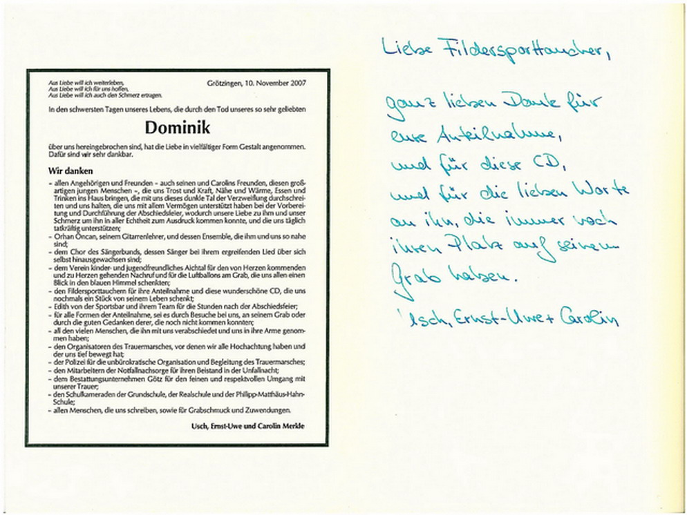 Ich bin mir nicht sicher, ob ich Dominik gerecht werde – kann das jemand? Noch immer ist es unfassbar, das ein so junger Mensch, auf so tragische Weise, aus der Mitte seines beginnenden Lebens gerissen wurde.